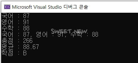 국어, 영어, 수학 점수를 입력받은 후, 총점, 평균, 학점 구하기 - 1