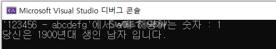 ('123456-abcdefg'에서 'a'값을 입력받고, 'a' 값을 이용하여 출생연도와 성별 출력)
