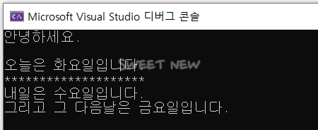 printf("내일은 수요일입니다.\n");