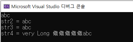 printf("\nstr4 = %s\n", str4); // str4[]에서 선언한 크기는 '10'이다.