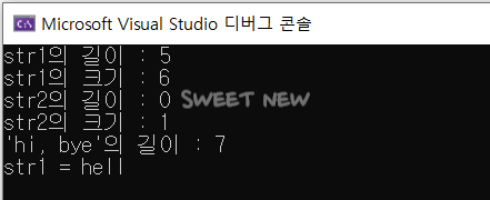 printf("'hi, bye'의 길이 : %d\n", strlen("hi, bye")); // strlen() 함수 안에 직접 문자열을 입힐 수 있다.