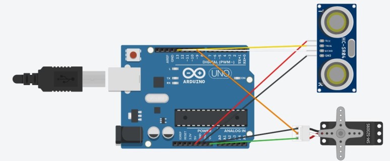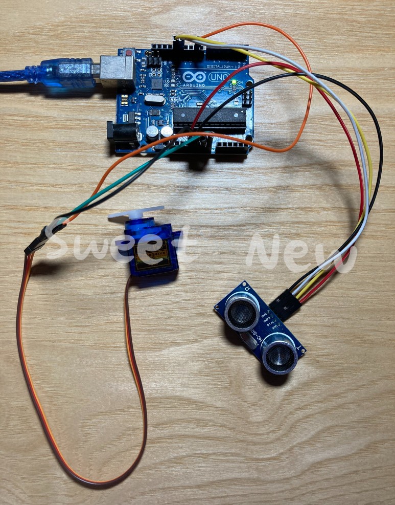 일정한 거리 값(15cm 이내)이 측정되면, 서보모터 움직이기