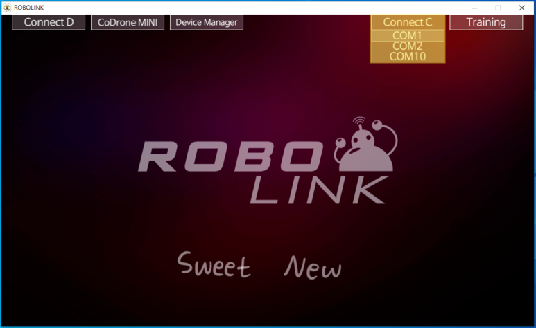 좌측 상단의 'CoDrone MINI'를 클릭하면, 연결할 수 있는 드론 리스트가 나타난다.