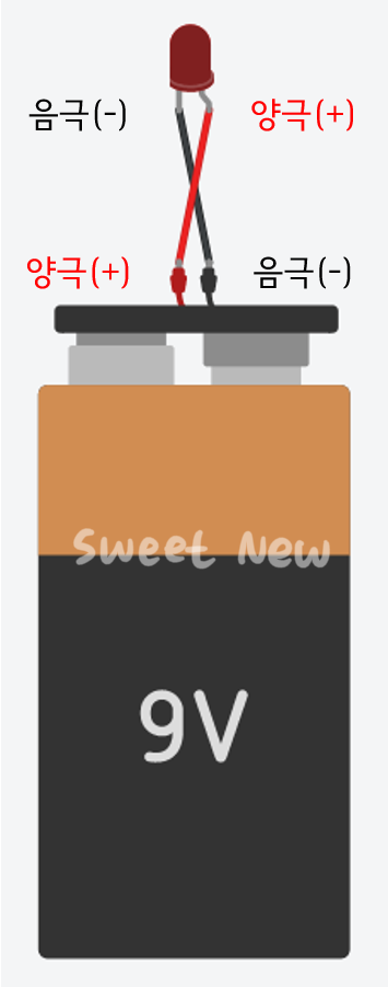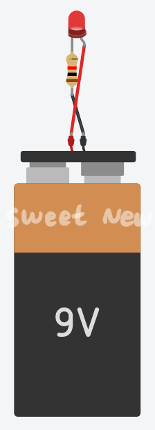 과전류를 방지하기 위해 LED와 9V 건전지 사이에 저항을 연결해 준다.