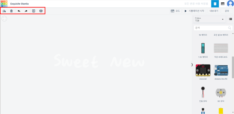 6. 오른쪽에는 사용할 수 있는 회로 부품(구성요소)이 존재한다. (코드 작성, 시뮬레이션 등)