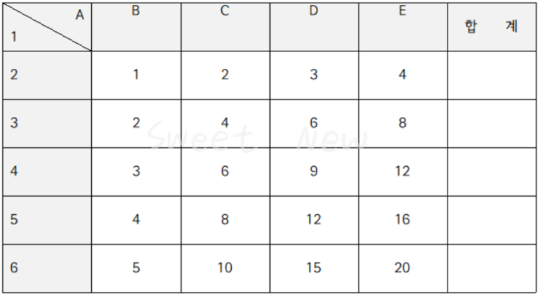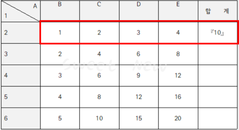 B2(1) + C2(2) + D2(3) + E3(4) = F2(10) 계산식이 성립된다.