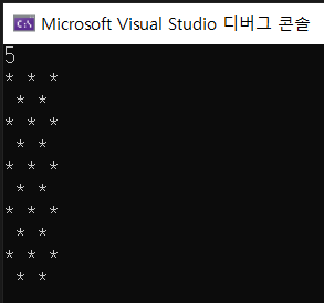 첫째 줄부터 2 × N - 1번째 줄까지 차례대로 별을 출력한다.