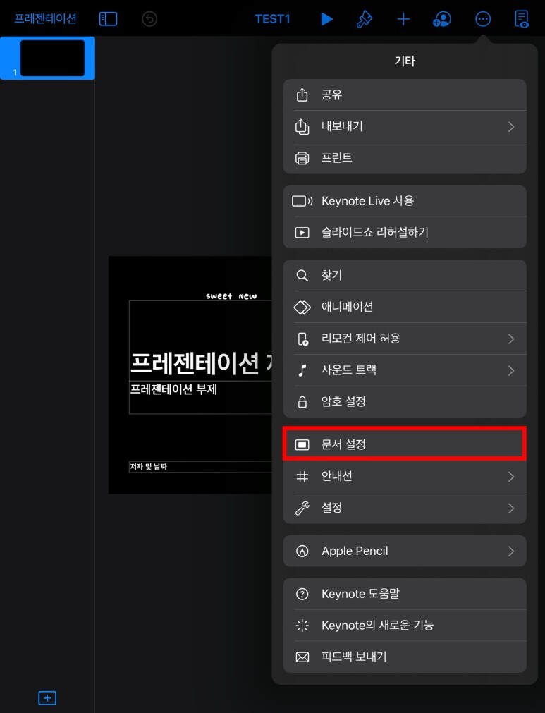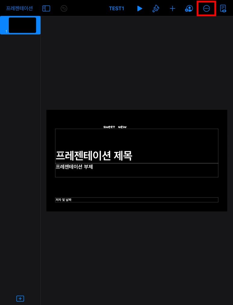 프레젠테이션을 생성한 후, 우측 상단의 기타 "..."을 선택한다.