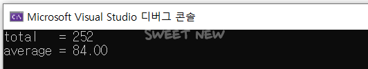 // avg를 float형으로 선언하였기 때문에 3.0f로 나누어 준다.
