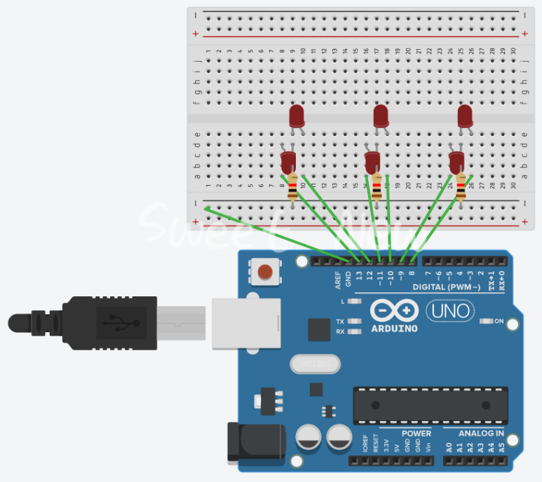 digitalWrite(led[i], HIGH); // HIGH(5V) 출력